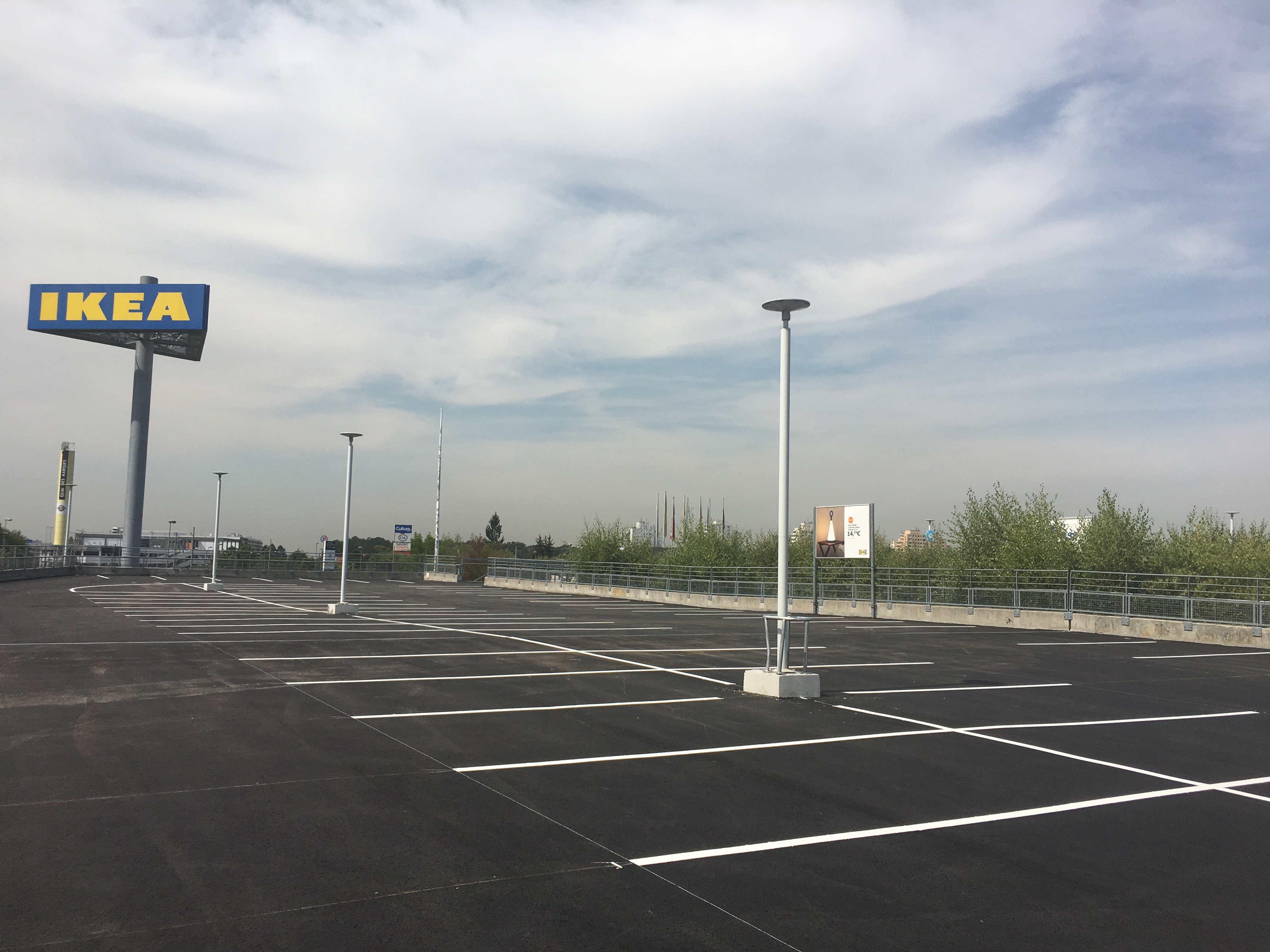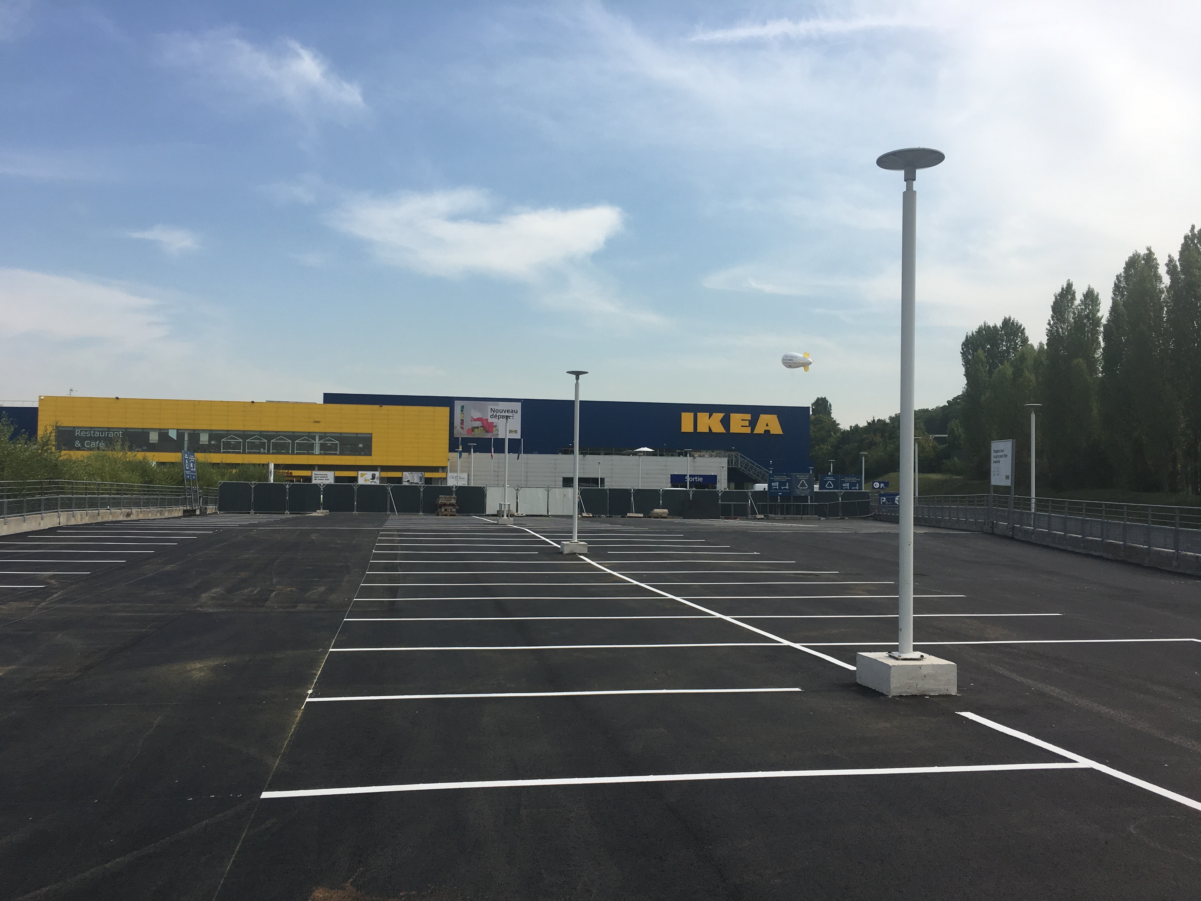 Ce chantier a permis de rénover les couches de roulement ainsi qu’une remise à neuf de l’étanchéité des parkings aériens. Des zones existantes ont également été réaménagées pour correspondre aux nouveaux besoins des clients IKEA, notamment avec la création d’une zone « Lockers ».