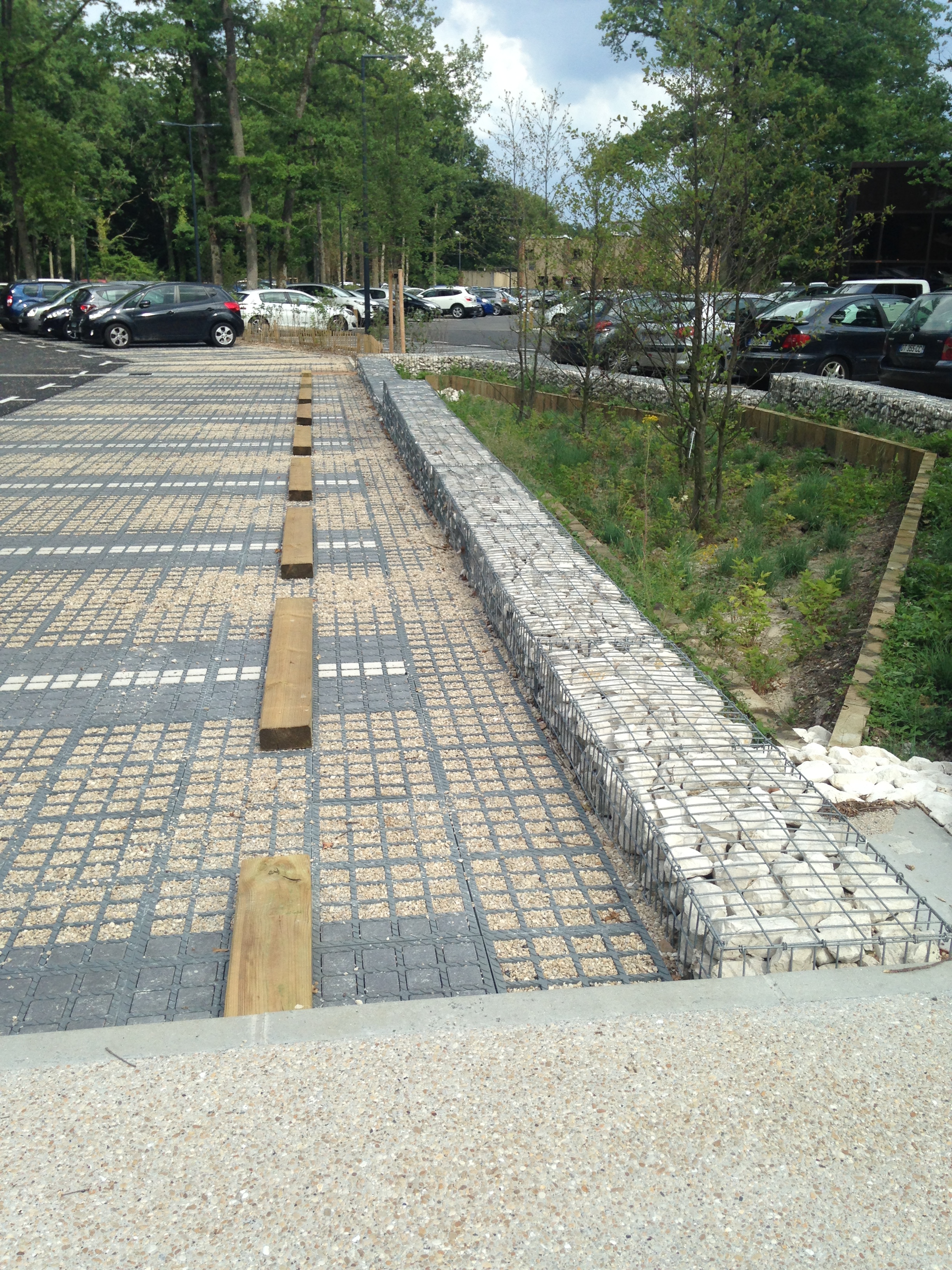 | Données clés | Chantier et ouvrages qualitatifs écolabellisés => Labels : « Biodiversity » et « Sustainable Site » 7000 m² de surface aménagée 250 emplacements de stationnement Gestion intégrée et mises en scène des eaux pluviales |